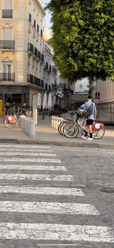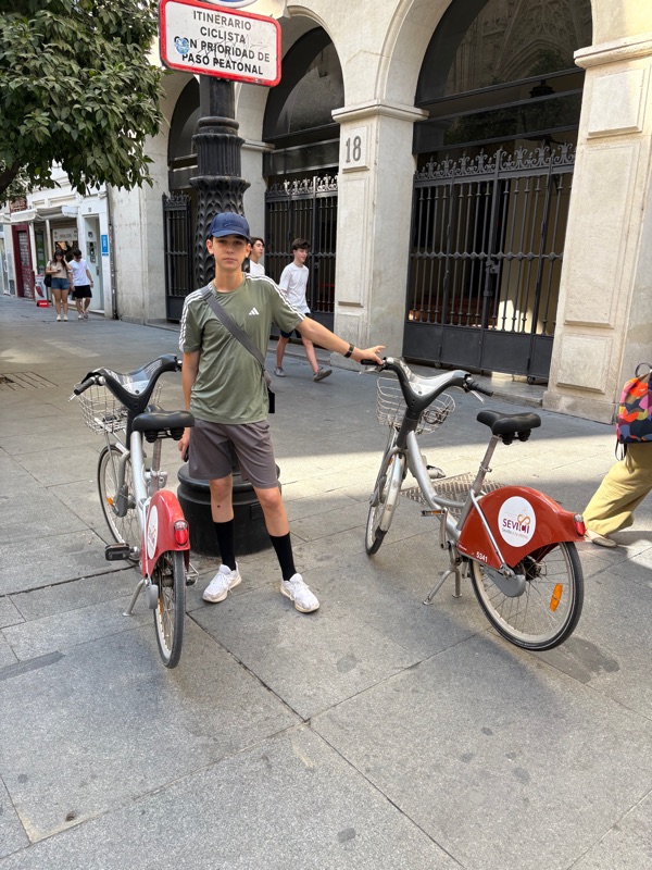 It should come without me saying that we ditched that option at 15 minutes and €4 and tried Servici. On our first night in Sevilla I had seen a sign that said something like €2.59 for a day at the Servici station close to our apartment and I couldn’t believe it. I’m still trying to figure out the pricing but it has become apparent that if you ride for less than thirty minutes your ride is free! We got the app and tried it. You just swipe and it releases! I’ve only had one bad experience with Servici but it was my fault: I left my daypack in the basket! But Don Quixote quickly remembered and I sprinted back to get my pack. Anyways when you’re done you just put the bike back in at a station and it stops the timer and you walk to your destination!