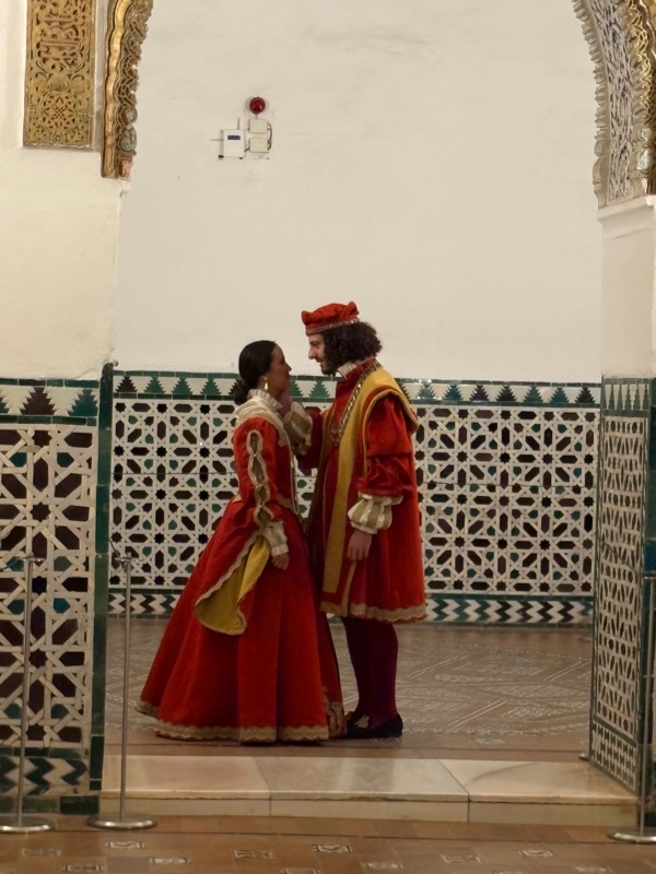 Afew weeks ago, while I was online booking our tour of the Real Alcazar, I noticed that there were additional tours offered, including one entitled “A theatrical performance of the marriage of Isabel of Portugal to Charles II of Spain”. It went on to explain that this was a nighttime performance beginning at 9pm. But the tickets were relatively inexpensive so I said “Why not?” without really knowing what to expect.