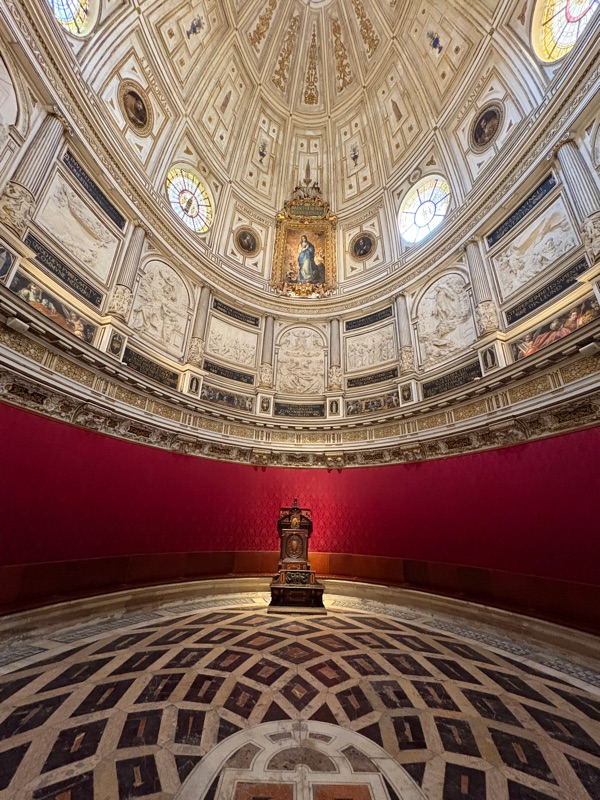 Of the dozens of rooms, chapels, alters and spaces of indescribable beauty, I have to say that this room is probably the least impressive for the vast majority of people who tour the cathedral. There’s really nothing of note inside the room, except spaces to sit, pray and talk. But the beauty of this ceiling, and I suppose the quietness of the space really struck me as probably one of my favorite places in the entire cathedral.
