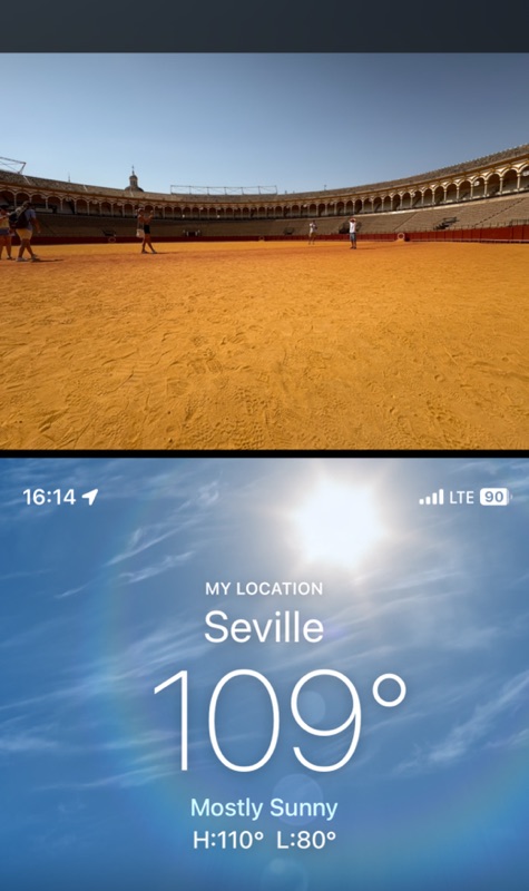 Incidentally, we now understand the origins of the Spanish “siesta”. The streets were empty and there was hardly any sound. It was quite peaceful actually. The fact is that it was just too hot for anyone to be out and about during that time, as the locals know all too well. But it’s a dry, desert-like heat, so coming from Houston, it really wasn’t all that unbearable. But don’t tell that to my iPhone which kept complaining “iPhone is too hot and needs too cool down” (seriously).