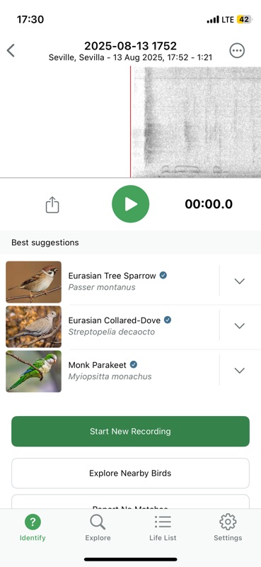 Yesterday was a very notable example when we were exploring the Palacio de las Dueñas and it was impossible not to hear the screams of Parakeets. I had previously downloaded the Iberian peninsula bird ID pack to my bird identification app. I quickly turned on the app to see what the bird was and the result was not very surprising but there were two other birds I wasn’t expecting:
