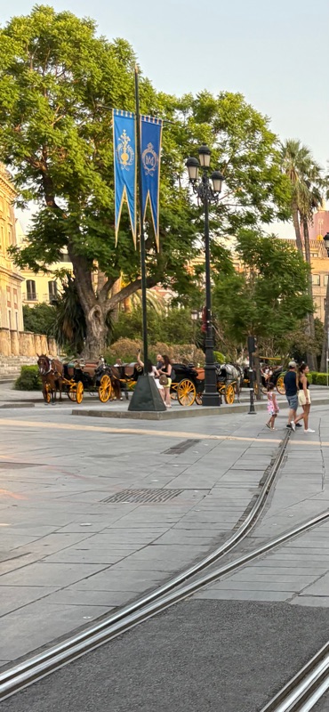 On the night we arrived in Sevilla it was impossible to not notice the distinct sound of horse’s hooves striking the brick of the street around the cathedral and Alcázar. I am sure there is more of a story to these horses but as far as I know they just move guests around the plaza in fancy carriages.